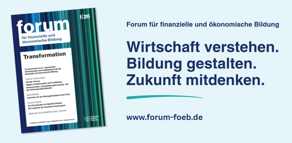 - Forum für finanzielle und ökonomische Bildung ist erschienen!Forum für finanzielle und ökonomische Bildung ist erschienen! Mit der ersten Ausgabe des Forums für finanzielle und ökonomische Bildung startet eine neue Zeitschrift für anwendungsorientierte Forschung und wissenschaftlich fundierten Wissenstransfer im Bereich der finanziellen und ökonomischen Bildung. Das Forum entsteht… Weiterlesen »Forum für finanzielle und ökonomische Bildung ist erschienen!